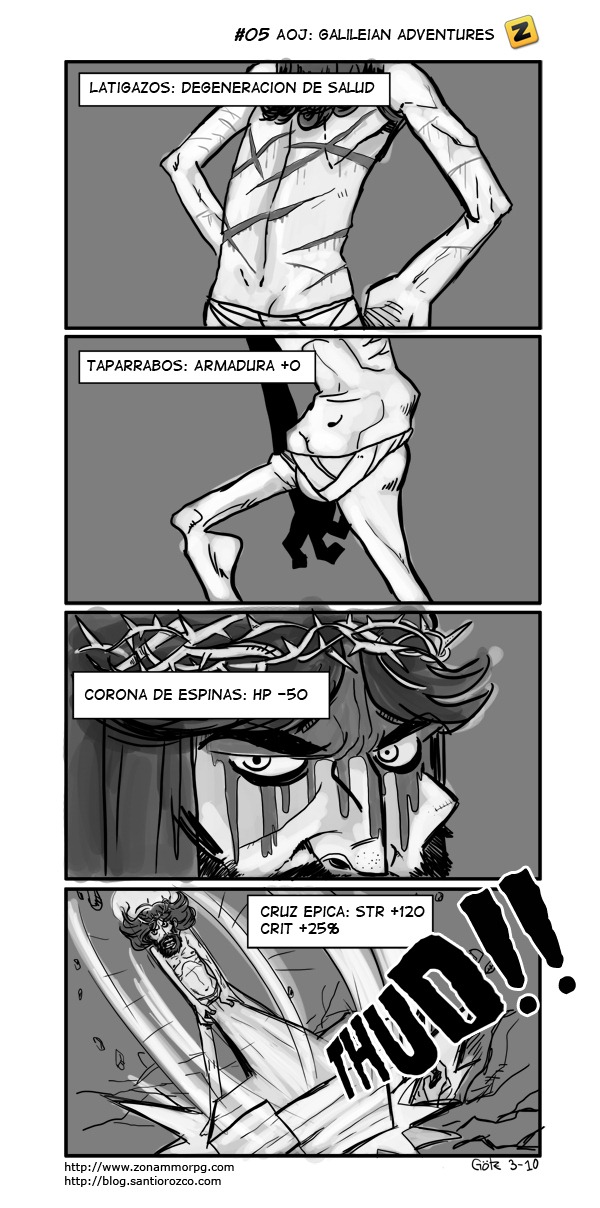Con motivo de la semana santa os traemos el 5º cómic de Götz que ha querido plasmar su versión de la Pasión de Cristo Online. Esperemos que lo disfrutéis y con esto también desearos felices fiestas.