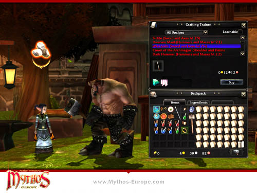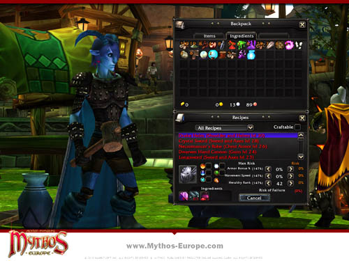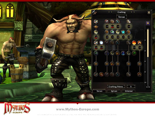 Una de las características más importantes del esperado MMO Hack-and-Slash Mythos es su amplio sistema de artesanía. Los jugadores pueden descomponer las recompensas obtenidas en peligrosas mazmorras o arrebatadas a repugnantes monstruos, para crear objetos únicos aún más poderosos. Los jugadores tienen que escoger entre tres especialidades en el árbol de habilidades: “Terran”, Sylvan” y “Etheral”. Utilizando bonificaciones de mejora y recogiendo puntos de habilidad, los jugadores estarán en disposición de forjar los objetos más poderosos del juego.