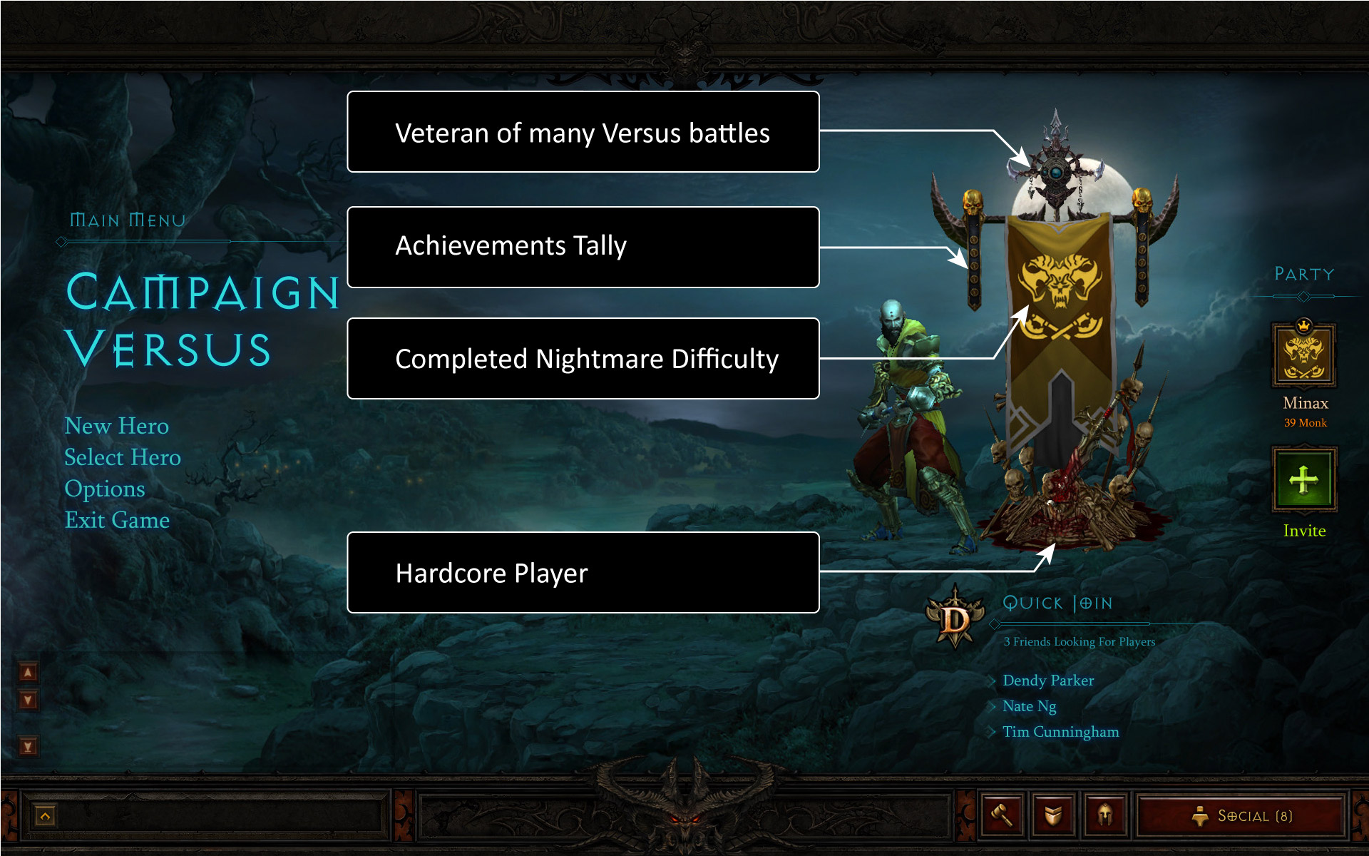 En Blizzard son conscientes de que el aspecto social de Diablo 2 dejaba bastante que desear y que obviamente necesitaba ser mejorado en gran medida. Durante la presentación recordaron que Battle.net se lanzó con el primer Diablo y que, hasta la llegada de Battle.net 2.0 con StarCraft 2, la evolución no había sido demasiado grande.