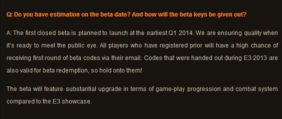 La compañía en una de las respuestas contesta claramente que la primera beta cerrada del juego comenzará a principios de 2014, lo que significa la primera confirmación de una fecha concreta algo que ya se llevaba esperando bastante tiempo.