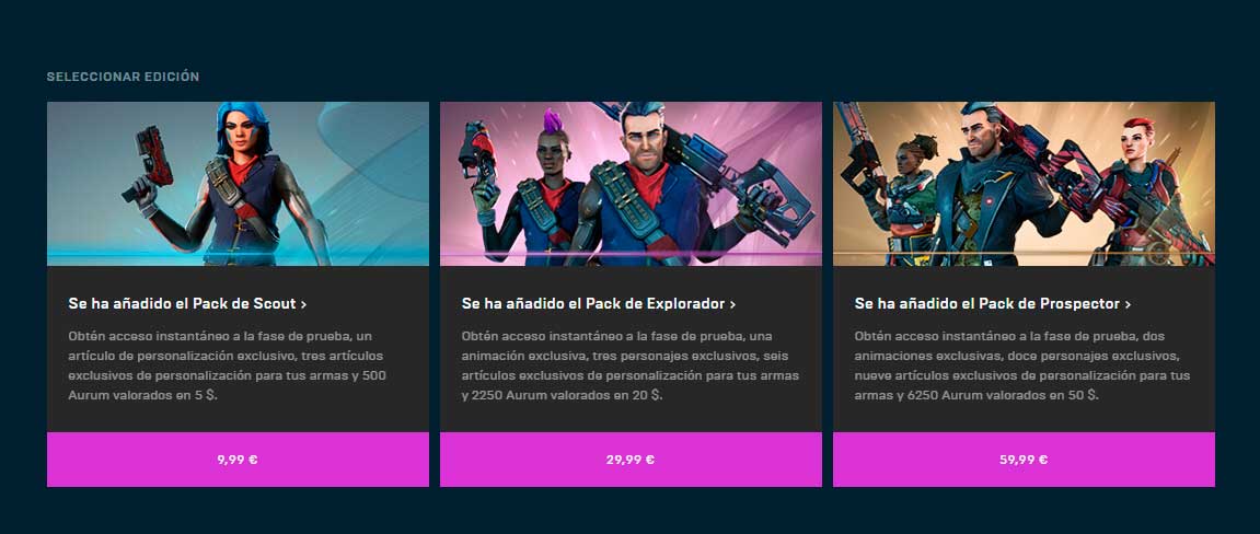 The Cycle sera gratuito (Free-To-play) pero si queréis colaborar con el proyecto podéis comprar ya alguno de los pack que se han puesto a al venta. 3 ediciones diferentes cargadas de atuendos y skins especiales.
