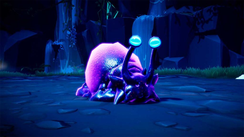 Estas criaturas parecidas a caracoles son la primera fauna agresiva que encontrarán en la Isla de los Retos. Y aunque no parezcan mucho, unos cuantos dimiluscos fuera de control pueden transformar rápidamente una buena cacería en una desastrosa danza sobre kilómetros de baba. Elimínenlos si los ven. Estaremos creando más fauna mientras tanto.
