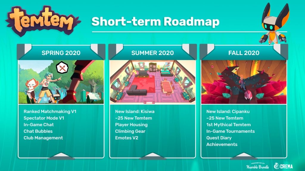 Ahora el equipo de Crema nos presenta una completa hoja de ruta con los cambios y novedades que podemos esperar en Temtem para los próximos meses. Un calendario con muy buena pinta y que trae muchas de las cosas que ya esperábamos de este juego. Nuevas islas, nuevos Temtem para capturar, el sistema de housing y los torneos y el ranking y matchmaking competitivos como platos fuertes para los próximos meses.