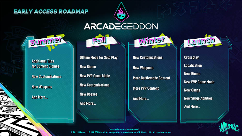 Arcadegeddon, el primer título original y autopublicado de IllFonic, llegó el 8 de julio de 2021 a PS5 y PC a través de Epic Game Store en acceso anticipado. Junto al lanzamiento del acceso anticipado, IllFonic desveló su hoja de ruta con los planes de Arcadegeddon, para que la comunidad de jugadores supiera qué podía esperar durante los meses posteriores y el contenido que se introduciría al juego antes de su lanzamiento oficial a principios de 2022. IllFonic ha publicado un par de grandes parches con los que solucionaron errores y los problemas que la comunidad había reportado desde julio. Y, hoy, introducimos la “Summer Update” de Arcadegeddon, con nuevo contenido y actividades.