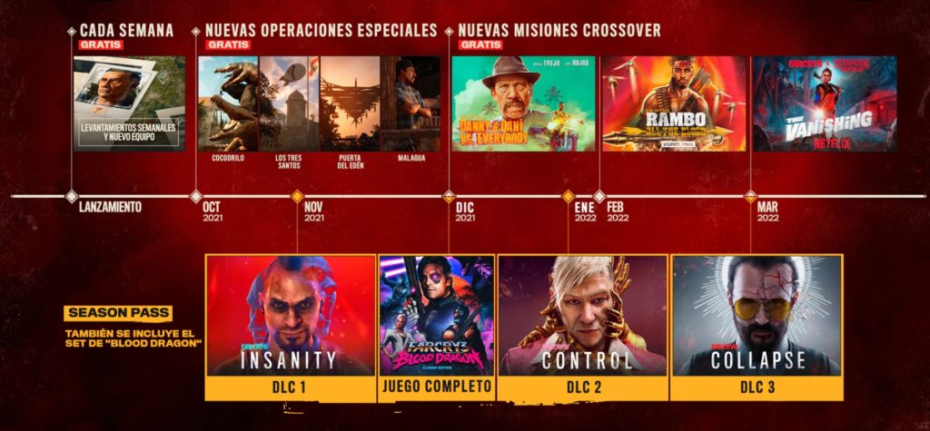 Ubisoft nos presenta el calendario de actualizaciones tras el lanzamiento que recibirá Far Cry 6. Una completa hoja de ruta cargada de contenido para los próximos meses. Con nuevas operaciones gratuitas y misiones en colaboración con Danny Trejo y Stranger Things.