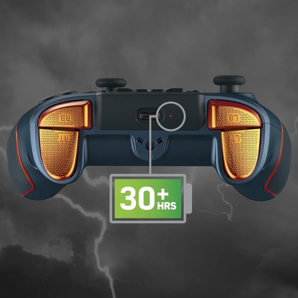 - Una batería inalámbrica de larga duración. Juega en móvil durante días con una batería recargable de 30 horas o recarga del todo el móvil en solo dos horas y media.