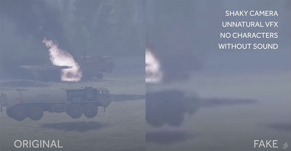 Aunque el juego puede simular el movimiento de los vehículos militares de forma relativamente realista, capturar a seres humanos con sus movimientos naturales sigue siendo muy complicado, incluso para los juegos más modernos. Por eso, en los vídeos falsos nunca aparecen personas en movimiento.