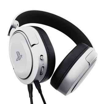 Los auriculares son los Trust GXT 498W Forta, con licencia para PlayStation, que impresionan por su diseño sencillo y están disponibles en dos variantes de color. Nosotros hemos recibido los blancos, aunque también están disponibles en negro. Su aspecto es clásico y no tiene florituras ningunas. Lo primero que llama la atención son las orejeras ovaladas, decoradas con el logotipo de PlayStation. Los emblemas son de un tono plateado que contrasta bien con los colores mencionados. Sin embargo, el logotipo sólo está impreso y no se puede palpar, no es un relieve.