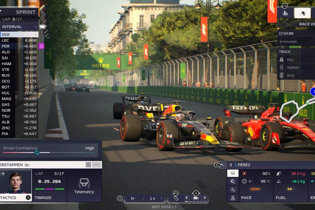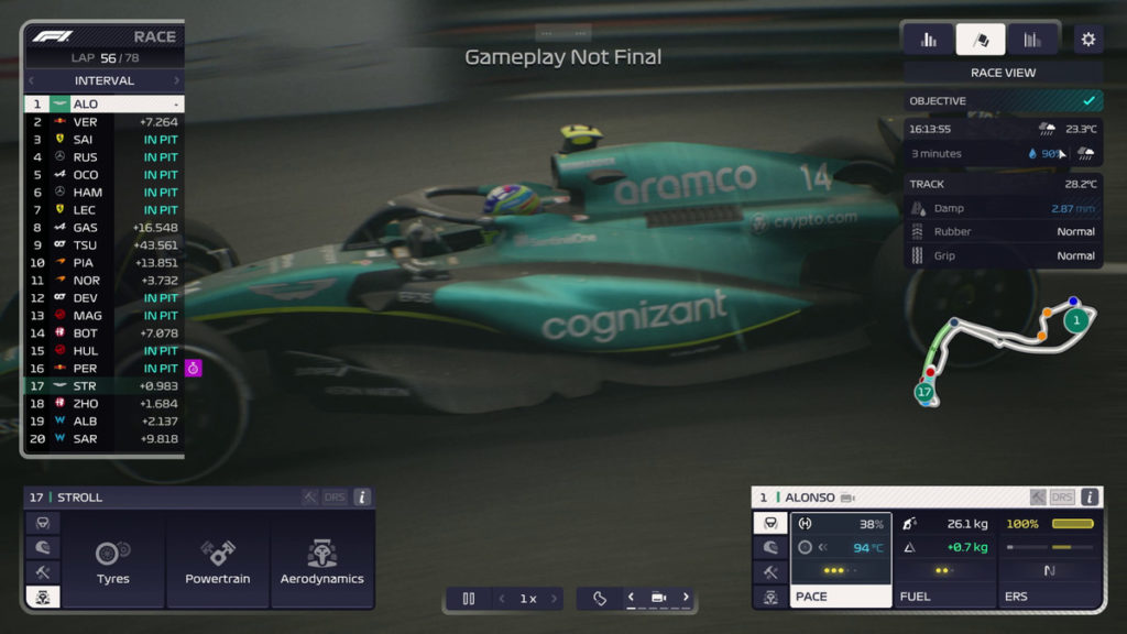 En otros aspectos, «F1 Manager 2023» parece un poco más artificial, por ejemplo en las llamativamente frecuentes y a menudo larguísimas fases de coche de seguridad, o deja las cosas demasiado al azar. Nada más hacernos con la mencionada posición de salida 4, tiene que ocurrir, por supuesto, que Lewis Hamilton nos deje atrás en la primera vuelta. Estamos eliminados, continúa el inglés. No parece casualidad que algo así ocurra después de haber conseguido la mejor posición de salida hasta el momento. Después de los mejores resultados de nuestro equipo Haas en la Q3, es decir, más o menos a partir de P8 o P9, muy a menudo nos encontrábamos con que nuestro piloto mejor clasificado acababa quedando especialmente rezagado en el grupo de pilotos, sin que lo hiciéramos de esta forma extrema a nuestras órdenes o pudiéramos invertir la estrategia en boxes. Pero está claro que no existe una carrera igual en «F1 Manager 2023», lo que nos parece positivo. La carrera desde la posición 4 de la parrilla, por ejemplo, terminó de forma desfavorable incluso tras la primera recarga de la partida guardada, pero transcurrió de forma completamente distinta. Lo mismo ocurre con el tercer intento, en el que lo dejamos así a pesar de acabar en 11ª posición. En otras palabras, hay una cualidad claramente positiva de imprevisibilidad. Sin embargo, es ligeramente oscura, porque los acontecimientos durante la carrera tienden a ser en nuestra desventaja y rara vez en nuestra ventaja. sin embargo, fue completamente diferente. Lo mismo puede decirse del tercer intento, en el que lo dejamos así a pesar de terminar en 11ª posición. En otras palabras, hay una cualidad claramente positiva de imprevisibilidad. Sin embargo, es ligeramente oscura, porque los acontecimientos durante la carrera tienden a ser en nuestra desventaja y rara vez en nuestra ventaja. sin embargo, fue completamente diferente. Lo mismo puede decirse del tercer intento, en el que lo dejamos así a pesar de terminar en 11ª posición. En otras palabras, hay una cualidad claramente positiva de imprevisibilidad. Sin embargo, está ligeramente teñida de oscuro, porque los acontecimientos durante la carrera tienden a ser en nuestra desventaja y rara vez en nuestra ventaja.