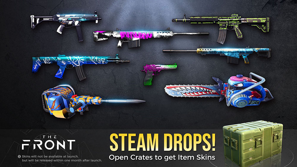 Tras su lanzamiento en acceso anticipado, The Front lanzará cajas con objetos que los jugadores conseguirán tras pasar cierto tiempo jugando. Al abrir estas cajas a través del menú principal del juego, recibirán nuevos aspectos de objetos que se aparecerán en su inventario de Steam y que podrán intercambiar o vender en el Mercado de la Comunidad de Steam.