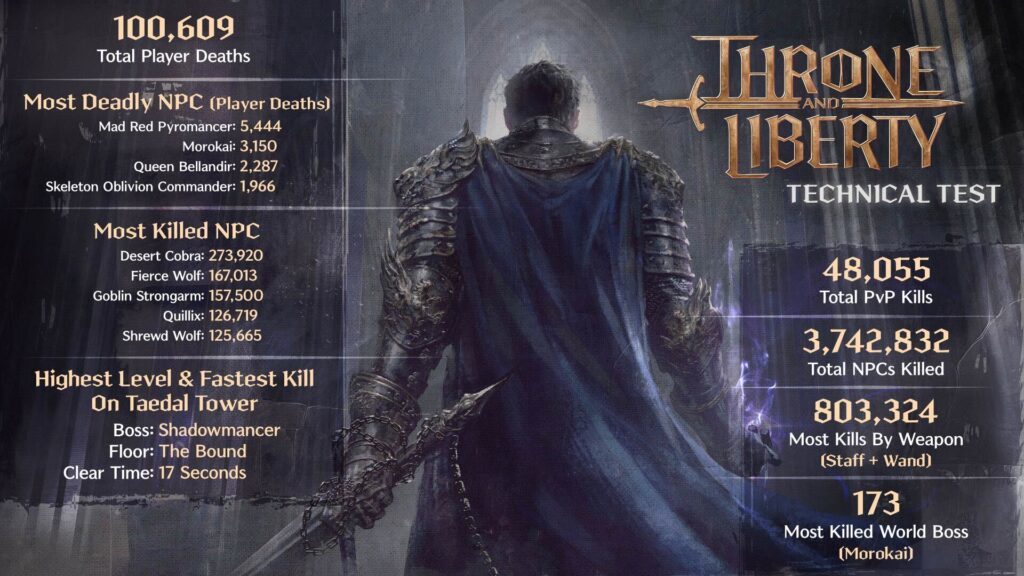 Tras la prueba técnica de Throne & Liberty a principios de otoño, NCsoft y Amazon han permanecido un poco callados sobre el juego MMO, que se ha pospuesto hasta 2024. Pero anoche se publicó una pequeña infografía con algunas cifras sobre el pasado test.