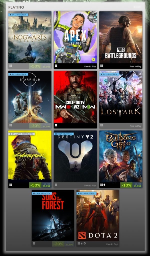 Como cada año, Steam ha sacado la lista de «lo mejor del 2023» con los juegos más populares, más vendidos y más jugados de Steam durante este año. La lista no trae muchas sorpresas, con juegos como Baldurs Gate 3, Starfield, Hogwarts Legacy (que fue la sorpresa al inicio del año) y Cyberpunk 2077 (seguramente impulsado por el éxito de su expansión de contenido).