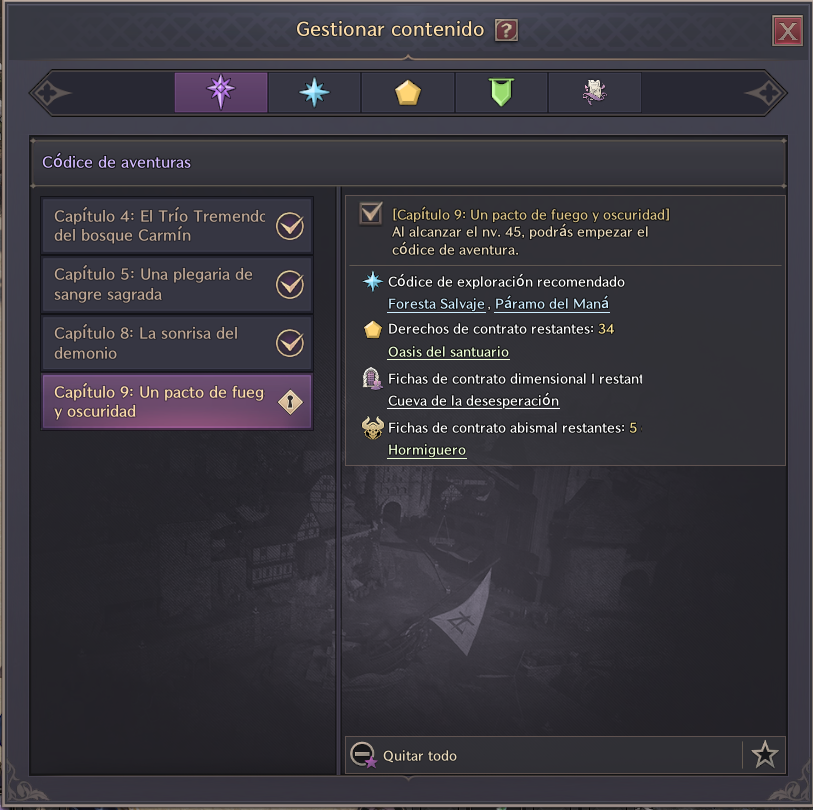 En ocasiones, puede que te falten uno o dos niveles para continuar con la misión principal. En esos casos, puedes completar contratos (misiones amarillas) que obtendrás de un NPC de contratos, o realizar misiones del códice de exploración. Completando varias misiones del códice en la zona en la que te encuentres, podrás subir de nivel fácilmente y reanudar la misión principal.