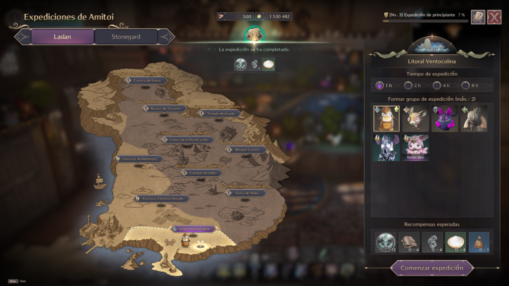 Las Expediciones Amitoi te permiten enviar a tus Amitoi a recoger Materiales de una Región mientras realizas otras actividades o estás desconectado.