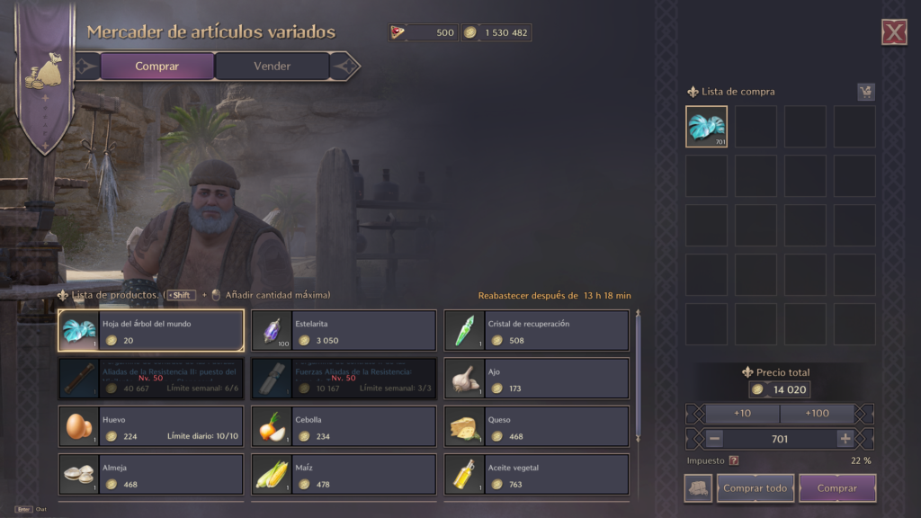 Una de las funciones de los Amitoi, tus compañeros de aventuras, es curarte gradualmente siempre que tengas disponibles Hojas del Árbol del Mundo. El mercader de objetos variados te vende estas hojas, así que asegúrate de tener un suministro suficiente para que tu Amitoi continúe curándote.