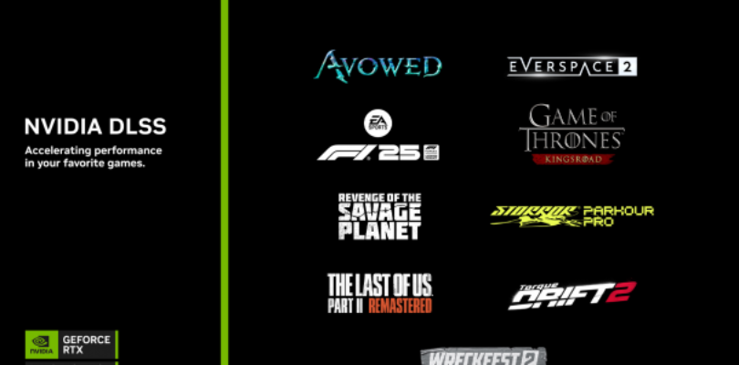 NVIDIA ha anunciado los juegos que, a partir de esta semana, incorporarán las últimas tecnologías RTX. En los próximos días, DLSS 4 con Multi Frame Generation multiplicará el rendimiento de EA SPORTS F1® 25, Avowed, EVERSPACE 2, STORROR Parkour Pro, The Last of Us™ Parte II Remaster, Torque Drift 2 y Wreckfest 2. Además, Game of Thrones: Kingsroad y Revenge of the Savage Planet ya están disponibles con DLSS Super Resolution.