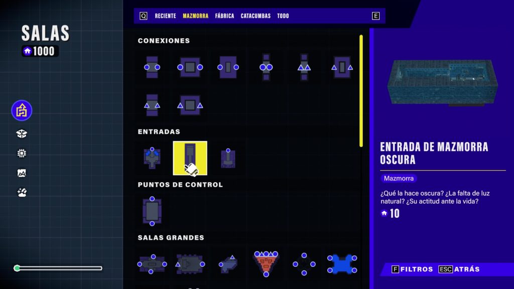 El editor de mazmorras es otro punto fuerte. Los jugadores pueden replicar las mazmorras oficiales o crear las suyas propias, compartiéndolas con la comunidad para recibir votos y recompensas. Los desarrolladores han prometido que las mejores creaciones podrían formar parte de ligas oficiales en el futuro, lo que añade un incentivo extra para los más creativos. Sin embargo, echamos en falta plantillas prefabricadas que faciliten el proceso creativo, ya que empezar desde un lienzo en blanco puede resultar intimidante para algunos.