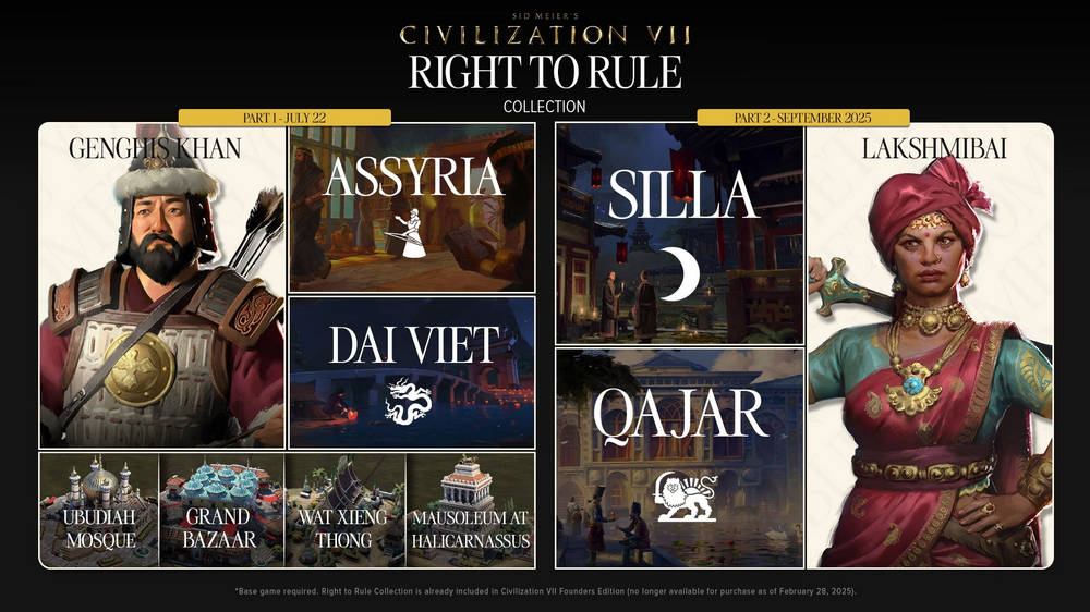 La segunda parte del DLC, que incluirá a la líder Lakshmibai y las civilizaciones Silla y Qayar, está prevista para septiembre de 2025.