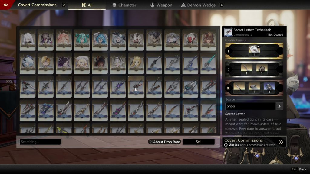 Aquí es donde Duet Night Abyss brilla con similitudes a Warframe y The First Descendant. Los personajes se coleccionan mediante mazmorras especiales, dailies y pistas que permiten comprar cartas o shards. No hay gacha para personajes o armas —un alivio en un mercado saturado de loot boxes—, pero puedes adquirirlos directamente (aunque a precios elevados) o farmearlos pacientemente. Duplicados sirven para upgrades, y cada héroe y arma se personaliza con módulos que mejoran stats, habilidades, cooldowns y efectos especiales. Hay un límite de capacidad que aumenta con el nivel, fomentando builds estratégicas.