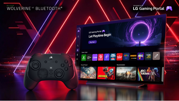 Los jugadores de sala de estar van a disfrutar de juegos en la nube en la pantalla grande con Razer Wolverine V3 Bluetooth®, desarrollado en colaboración con LG y siendo el mando gaming inalámbrico más rápido[1] del mundo, diseñado para juegos en la nube y sin interrupciones en la pantalla grande.