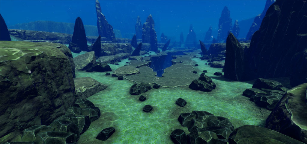 Badia de Cara no se limitará a lo que sobresale del agua. El equipo confirma que habrá varios puntos de interés submarinos, y muestra un primer vistazo al área conocida como Groaning Deep. Por el momento, lo que se ve corresponde a una primera pasada del terreno, centrada en definir la base del relieve y grandes formaciones rocosas.